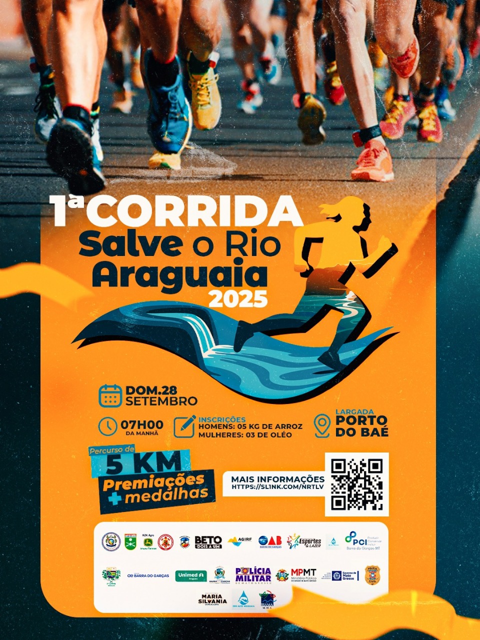 Barra do Garças reunirá atletas para a 1ª Corrida Salve o Rio Araguaia, no dia 28 de setembro, no Porto do Baé. A ação faz parte do projeto de mesmo nome que incluirá uma programação ambiental a partir do dia 20, com descida de caiaque, coleta de lixo no Araguaia e atividades pedagógicas em escolas.