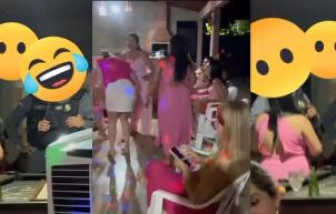 As participantes da festa, acreditando que a chegada dos agentes fazia parte da programação da despedida, começaram a brincar com eles. Logo em seguida, eles explicaram que haviam sido realmente chamados para atender uma ocorrência de perturbação do sossego.