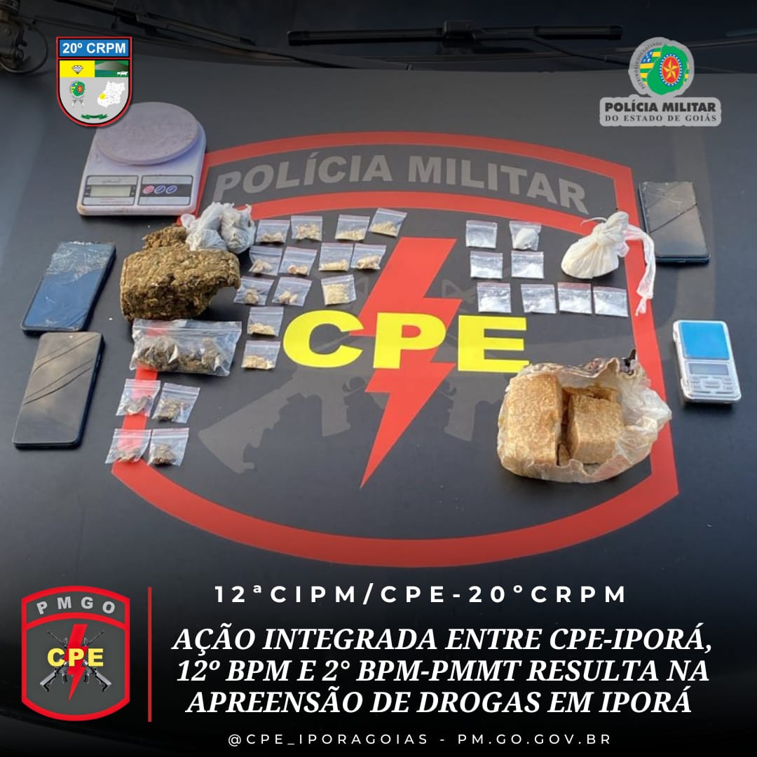 CPE IPORÁ AÇÃO INTEGRADA RESULTA NA APREENSÃO DE DROGAS E PRISÃO DE TRAFICANTES NA CIDADE DE IPORÁ-GO
