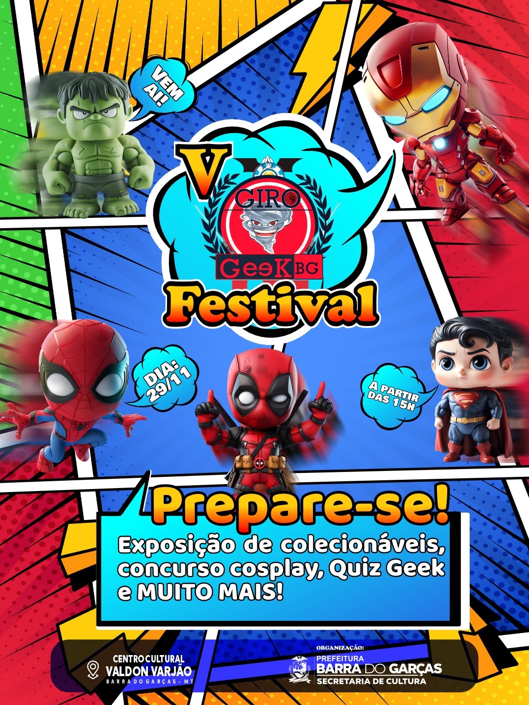 Para não perder nenhuma novidade, basta seguir o Giro Geek BG Festival e a Secretaria de Cultura de Barra do Garças no Instagram. O universo geek te espera!
