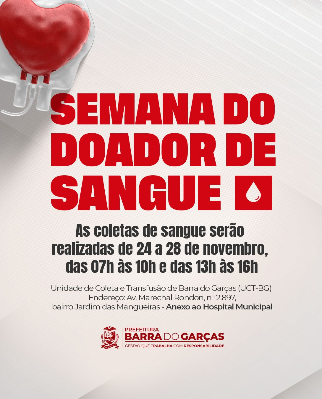 Anexo ao Hospital Municipal Milton Pessoa Morbeck, o Banco de Sangue de Barra do Garças atende cerca de dez municípios da região. Os interessados em doar qualquer tipo sanguíneo podem procurar a unidade durante todo o ano, já que o estoque necessita de reposição constante.