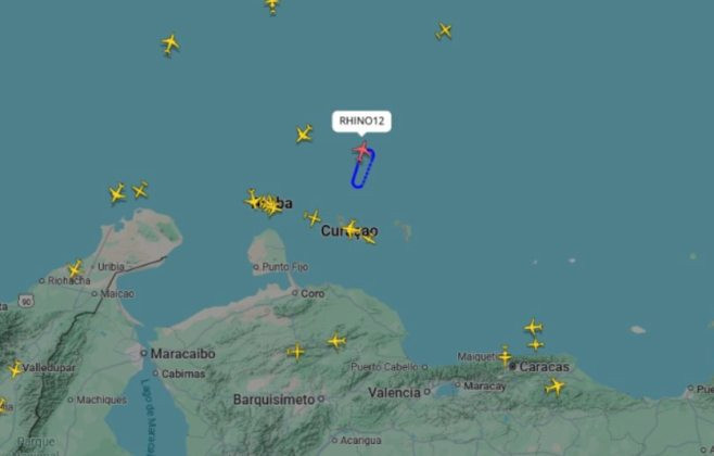 Segundo registros da plataforma FlightRadar24, dois aviões identificados com os indicativos "RHINO11" e "RHINO12" foram observados sobre o espaço aéreo do norte de Curaçao e na frente do estado venezuelano de Falcón.