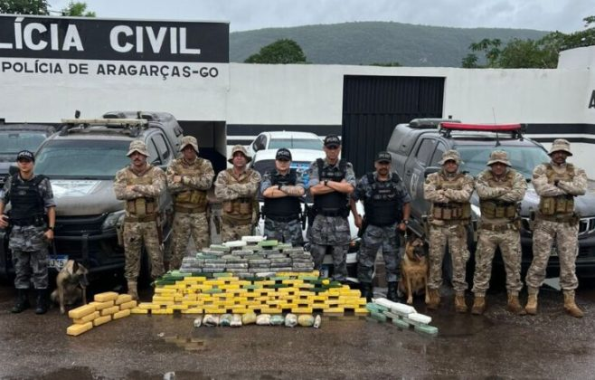 A droga e as armas foram encaminhadas à Delegacia de Aragarças, onde o caso será investigado.