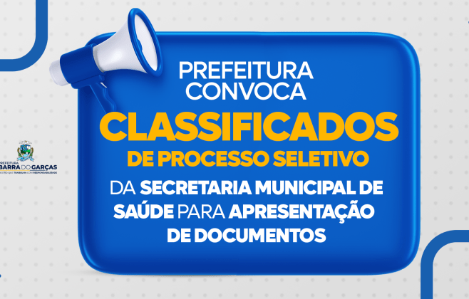 A Prefeitura de Barra do Garças, por meio da Secretaria Municipal de Saúde, convoca os candidatos aprovados e classificados no Processo Seletivo nº 001/2026 para apresentação de documentação, conforme o resultado final do certame.