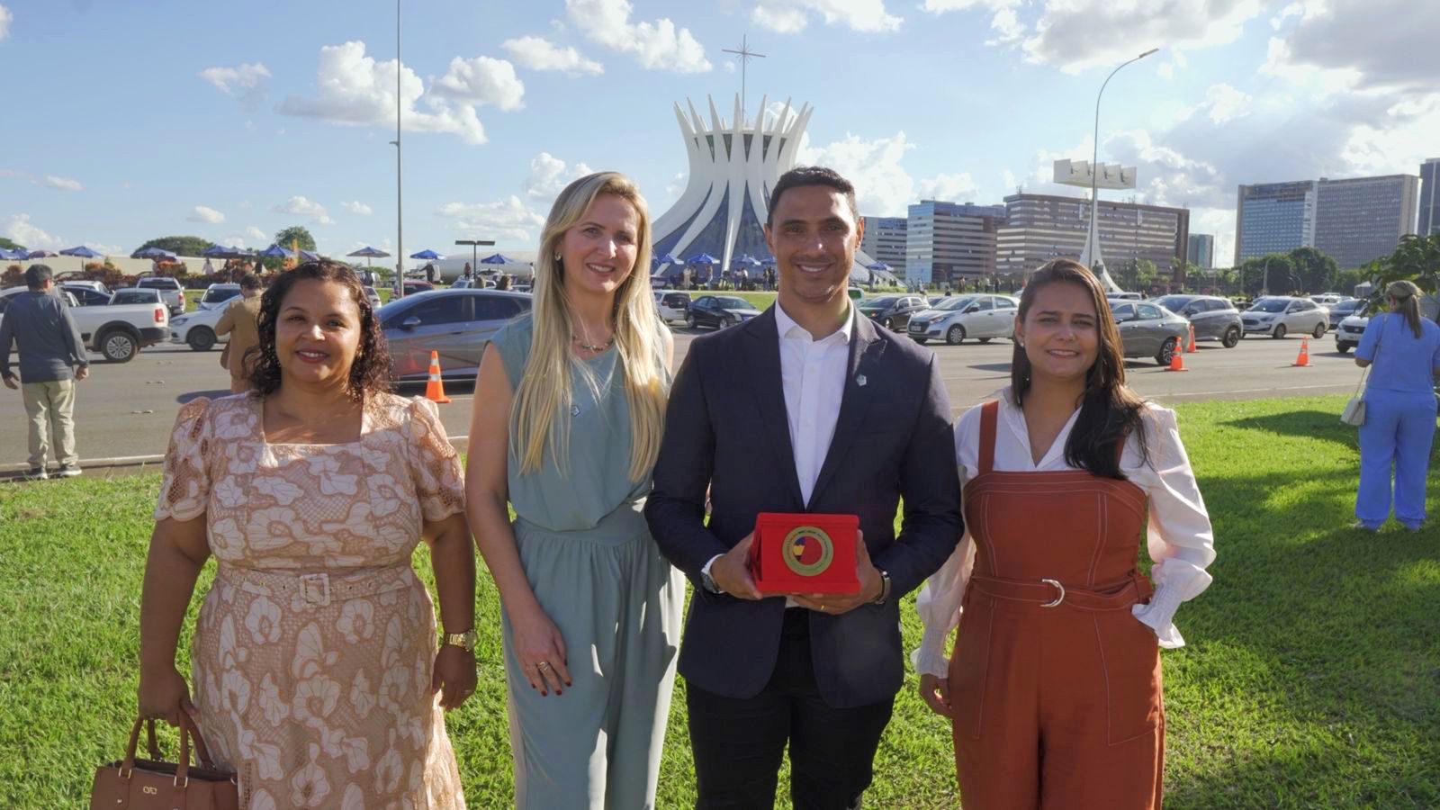 O prefeito Ricardo Galvão, acompanhado da primeira-dama Raqueline Galvão, da secretária municipal de Educação Juscilene Dias Amorim e da coordenadora Bruna Nunes, representou o município de Aragarças na premiação da 2ª edição do Selo Nacional Compromisso com a Alfabetização, realizada na segunda-feira, 23 de março, em Brasília.