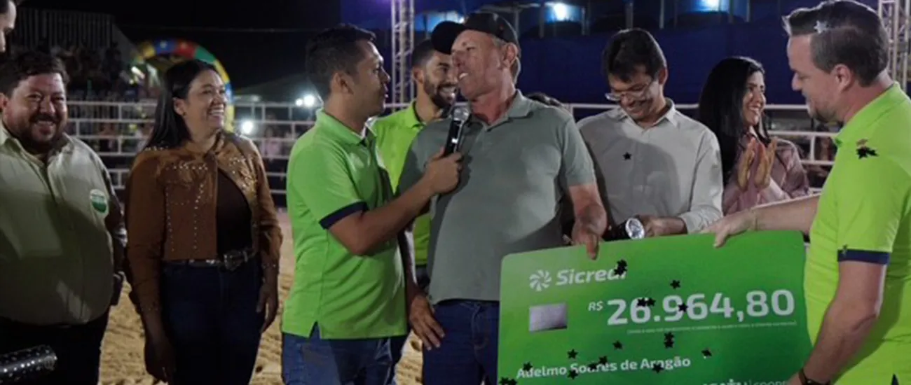 Adelmo Soares de Aragão, segundo associado da agência local e membro há 20 anos, foi surpreendido com a entrega do prêmio durante a festa de rodeio em Santo Antônio do Fontoura/MT.