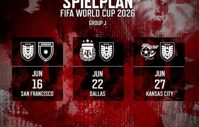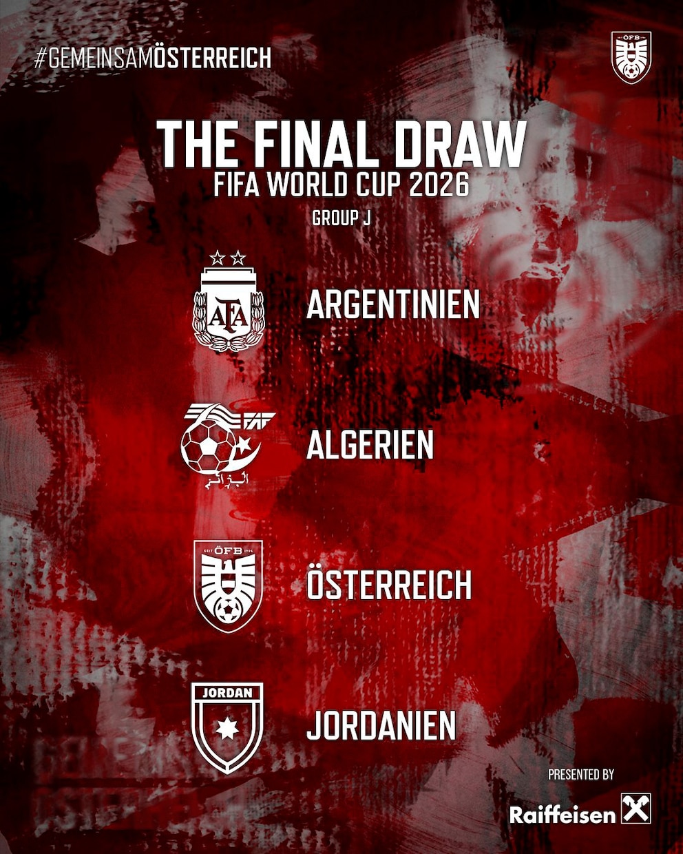 Fifa confirmou os dias, horários e sedes de todos os jogos da Copa do Mundo de 2026, que será organizada conjuntamente por Estados Unidos, México e Canadá. Com isso, cada seleção passou a divulgar em suas redes sociais o calendário oficial. A Áustria apresentou seu cronograma no Grupo J, que divide com Argentina, Argélia e Jordânia.