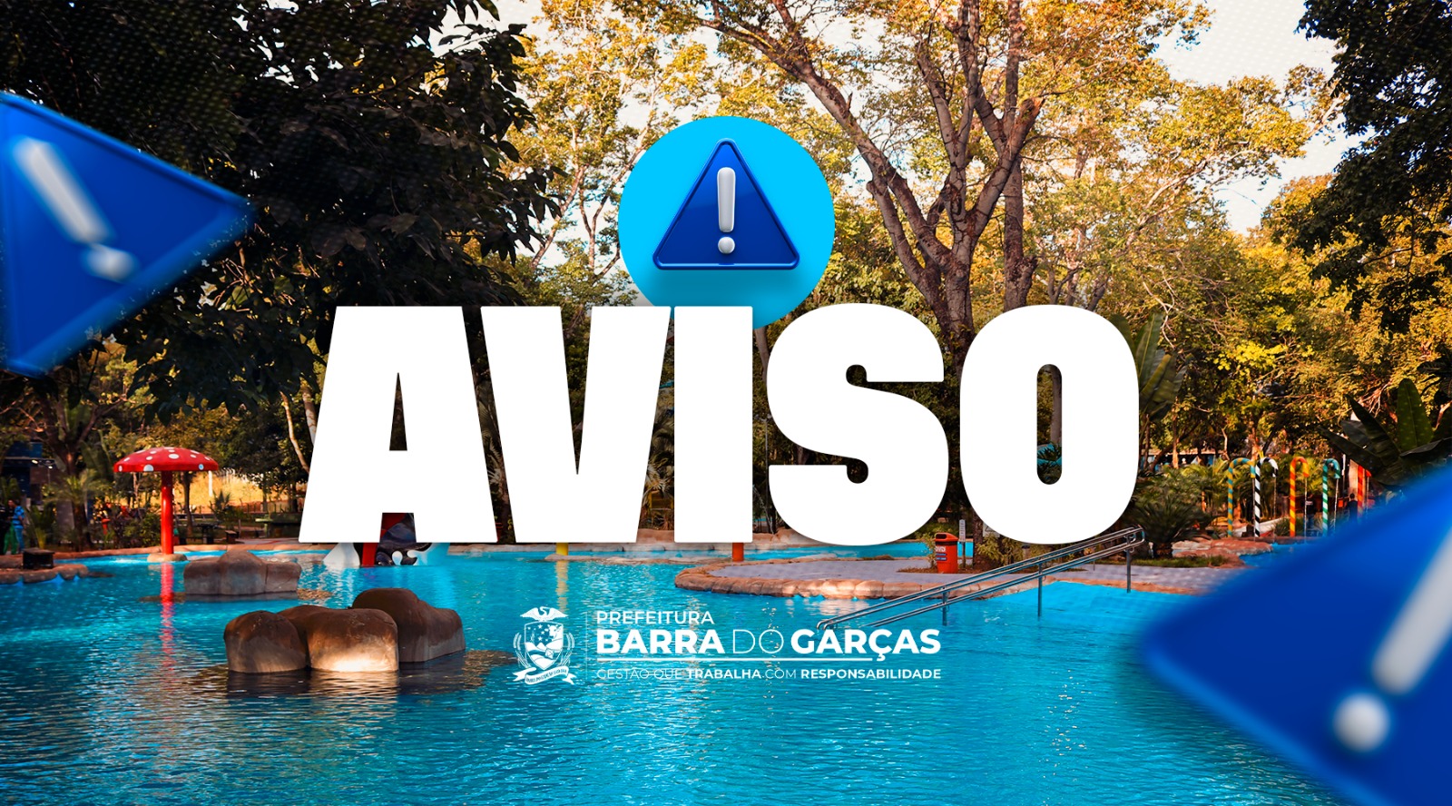A Prefeitura de Barra do Garças informa que o Parque Municipal das Águas Quentes ficará fechado nos dias 22 e 23 de dezembro, das 8h às 14h, para manutenção. Os trabalhos visam garantir o pleno funcionamento do parque e a segurança dos usuários.